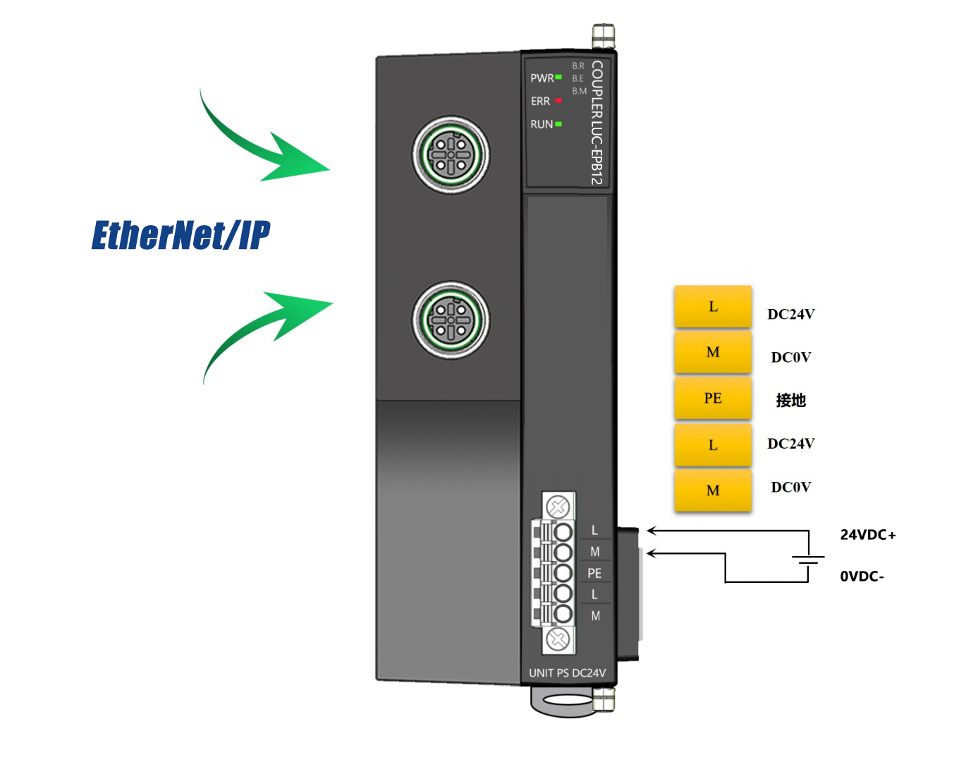 薄片型多功能分布式I/O,ETHERNET/IP耦合器,2xM12,可級聯,可擴展32個模塊,24VDC