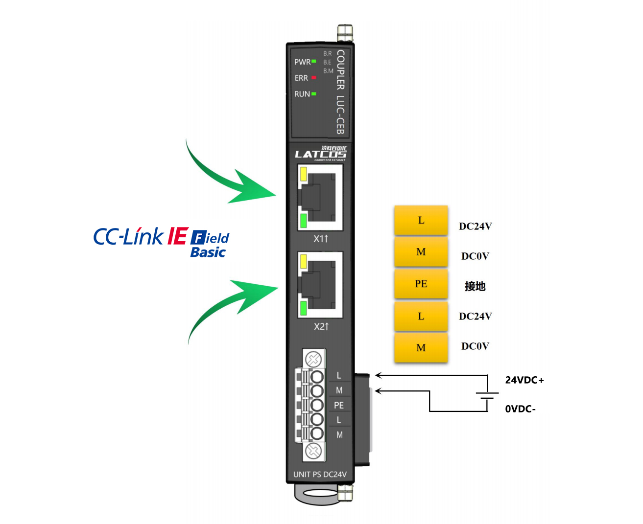 薄片型多功能分布式I/O,CCLINK IE FIELD BASIC 耦合器,2xRJ45,可級聯,可擴展32個模塊,24VDC