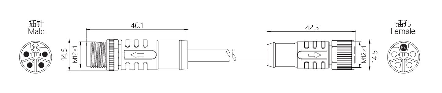 規格描述:M12-M12,直型針-直型孔,L-Code