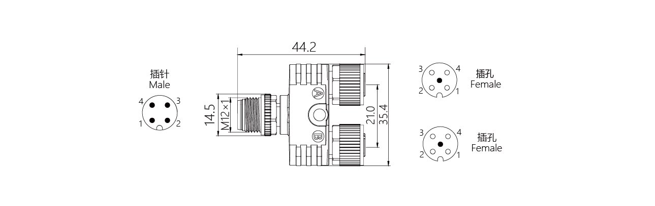 規格描述:Y型分支器,M12轉M12,A-Code
